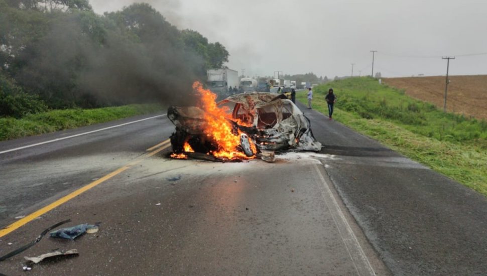 Uma pessoa morreu e um carro foi completamente destruído pelas chamas após uma colisão em Araucária, na região metropolitana de Curitiba, na manhã desta sexta-feira (15). O acidente ocorreu no quilômetro 164 da BR-476.