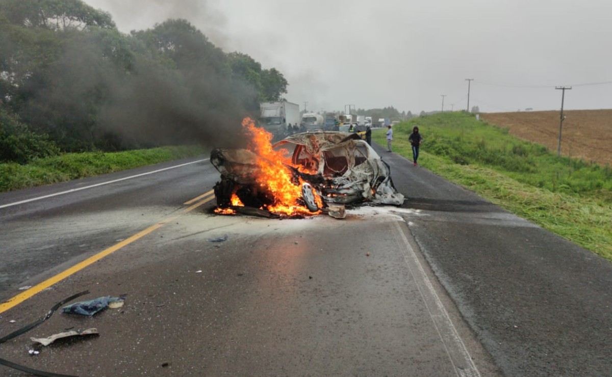 Uma pessoa morreu e um carro foi completamente destruído pelas chamas após uma colisão em Araucária, na região metropolitana de Curitiba, na manhã desta sexta-feira (15). O acidente ocorreu no quilômetro 164 da BR-476.
