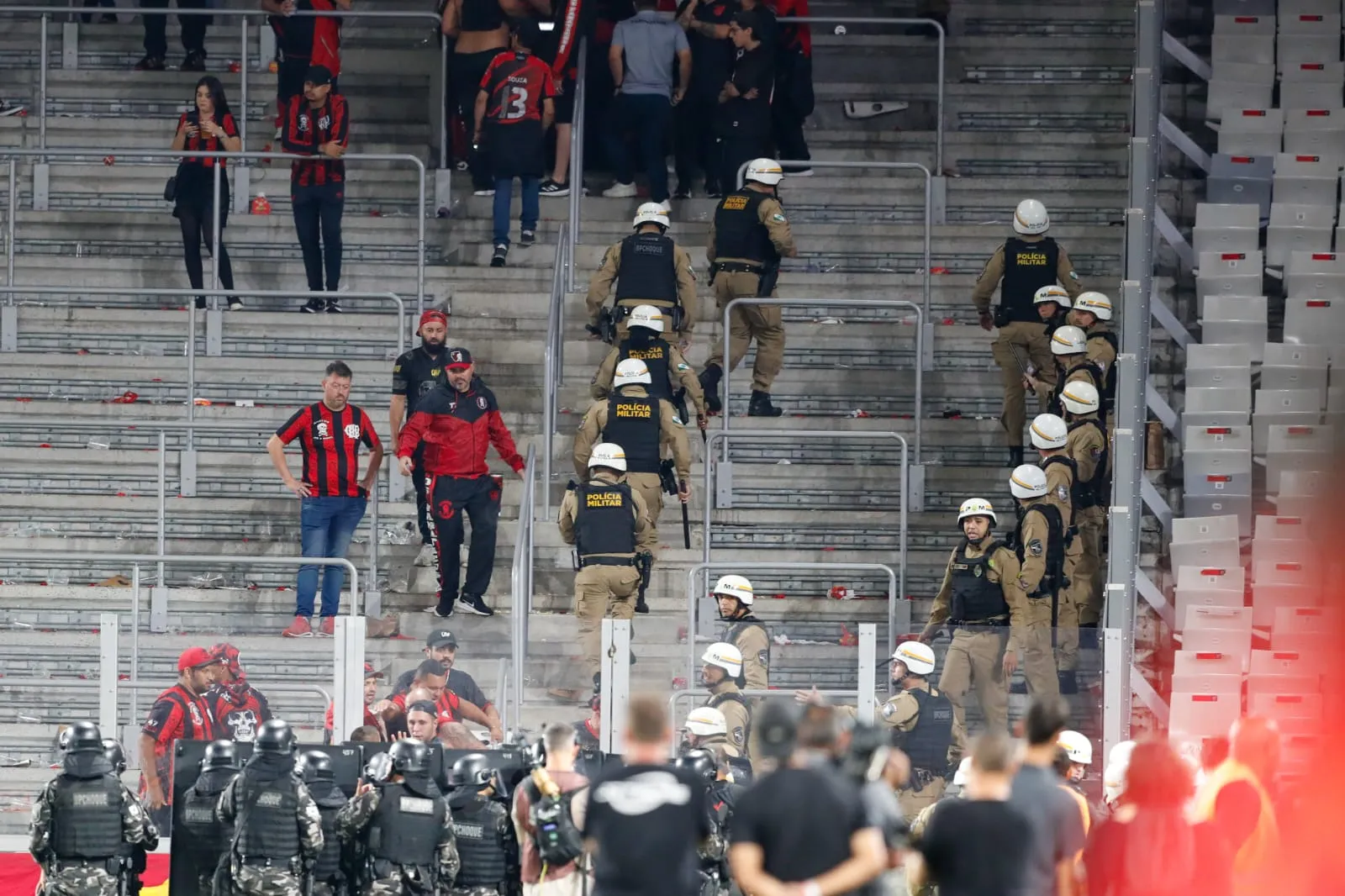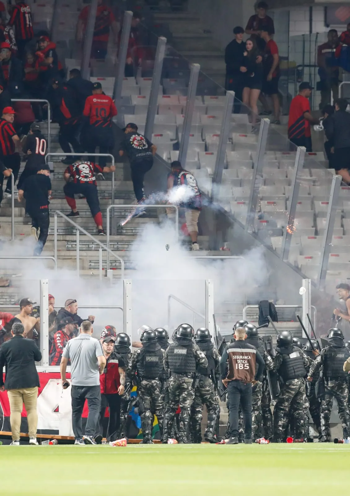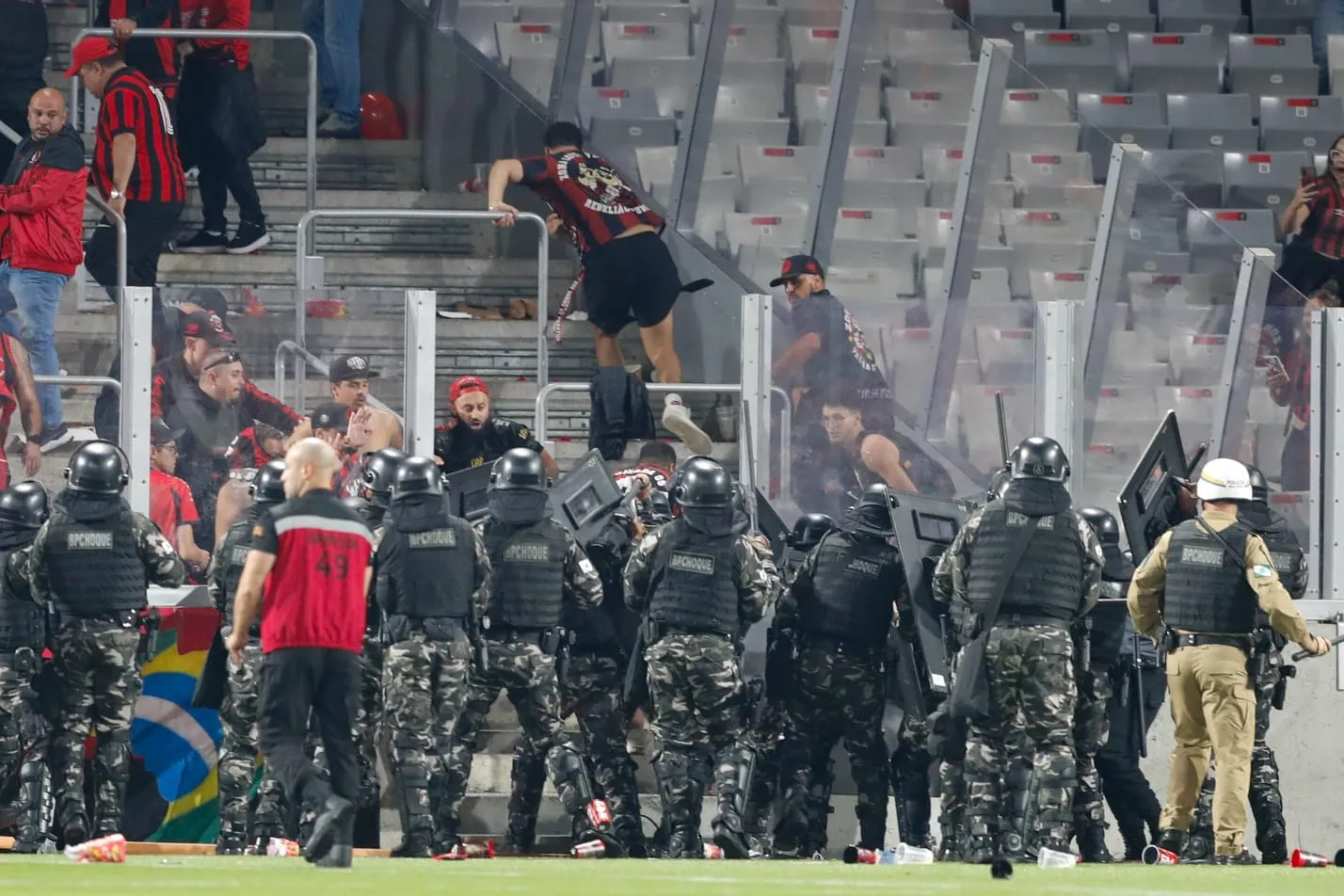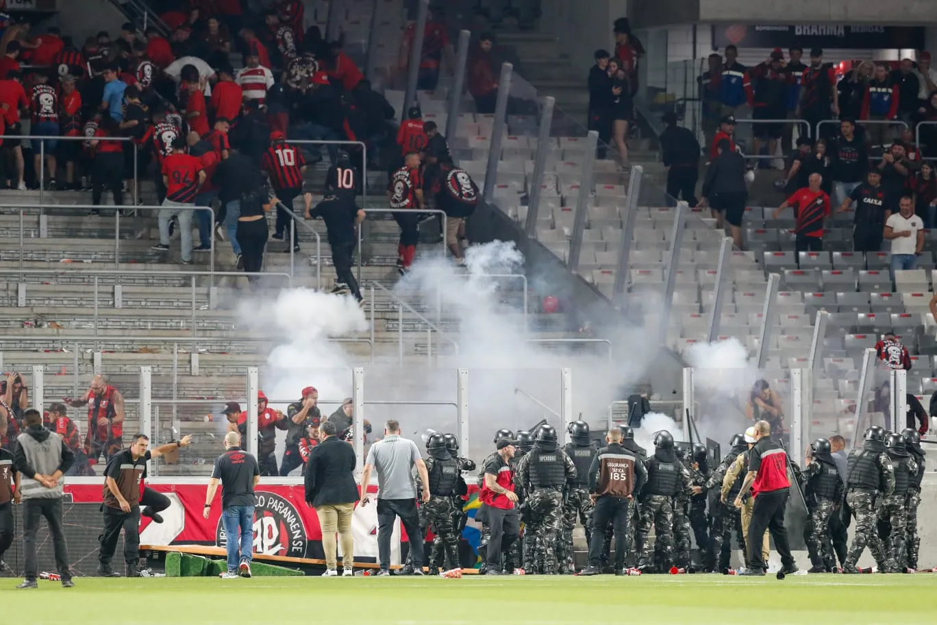 Após a derrota do Athletico por 2 x 1 para o Red Bull Bragantino na noite desta quinta-feira (5), o pau quebrou nas arquibancadas da Ligga Arena. Indignados com o resultado em campo, especialmente pelo risco de rebaixamento para a Série B em pleno ano do centenário, torcedores do Furacão tentaram invadir o campo de jogo quebrando portões que dão acesso ao gramado.
