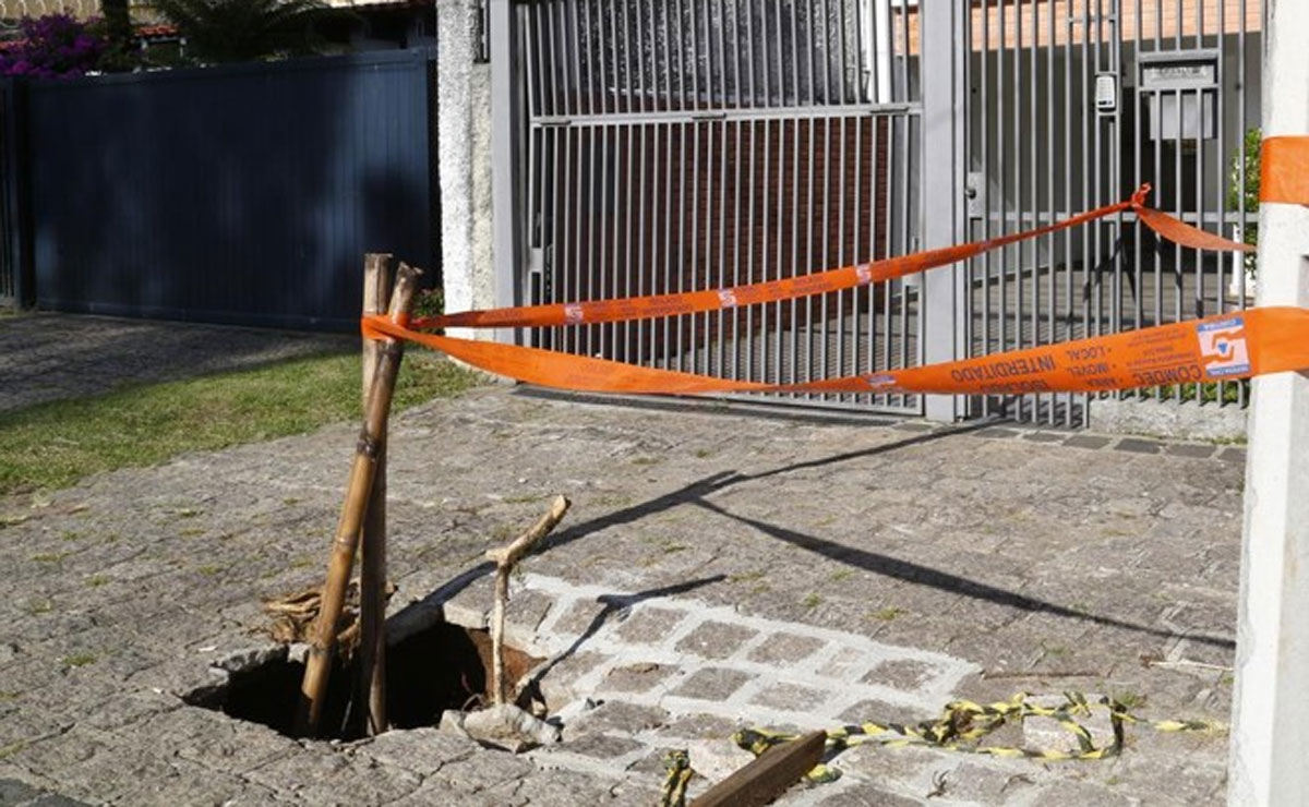 “Da primeira vez que abriu, tivemos que chamar a Sanepar para trocar as manilhas de uma valeta pluvial que passa por baixo da calçada. Era um sistema hidráulico de mais de 80 anos que estava com problema e, para nós, tinha sido resolvido. Até pagamos as manilhas novas e a prefeitura, na época, chegou a fechar a calçada. Só que abriu de novo e ninguém aparece para resolver”.