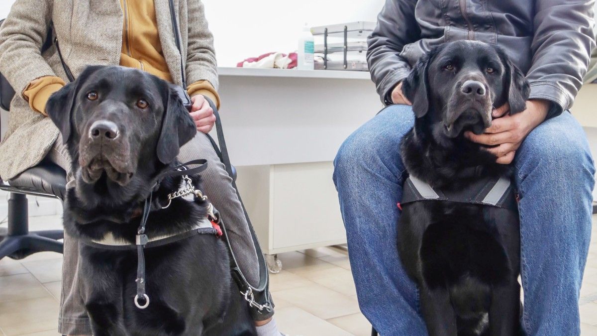 Os cães, dois mestiços das raças labrador e golden retriever de 3,2 anos, são do Centro de Formação de Treinadores e Instrutores de Cães-Guia do Instituto Federal Catarinense – Campus Camboriú (SC).
