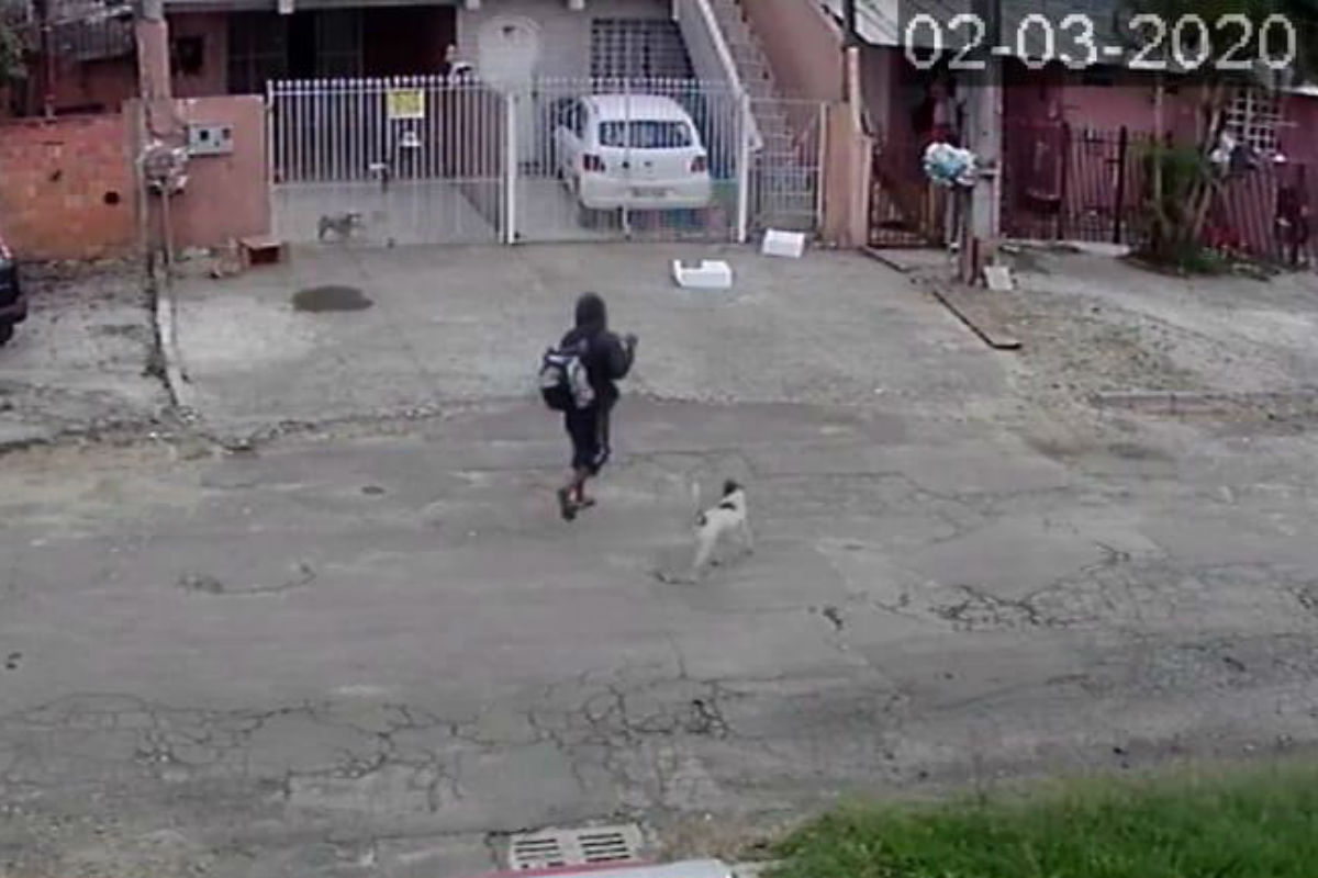 Imagens de uma câmera de segurança flagraram uma pessoa envenenando cães de algumas casas da Rua Vereador Antônio Giacomassi, no Boqueirão, em Curitiba. O caso foi registrado na manhã de segunda-feira (2), por volta das 11h. Segundo o relato de um morador, pelo menos seis animais precisaram ser atendidos por um veterinário da região. Dois cachorros morreram. As imagens mostram o que seria um homem vestindo capuz e carregando uma mochila nas costas, que estaria atirando pedaços de carne de frango envenenados por cima de um portão de uma casa. Ele não foi identificado, mas o suposto homem está com um cachorro branco caminhando ao lado dele.