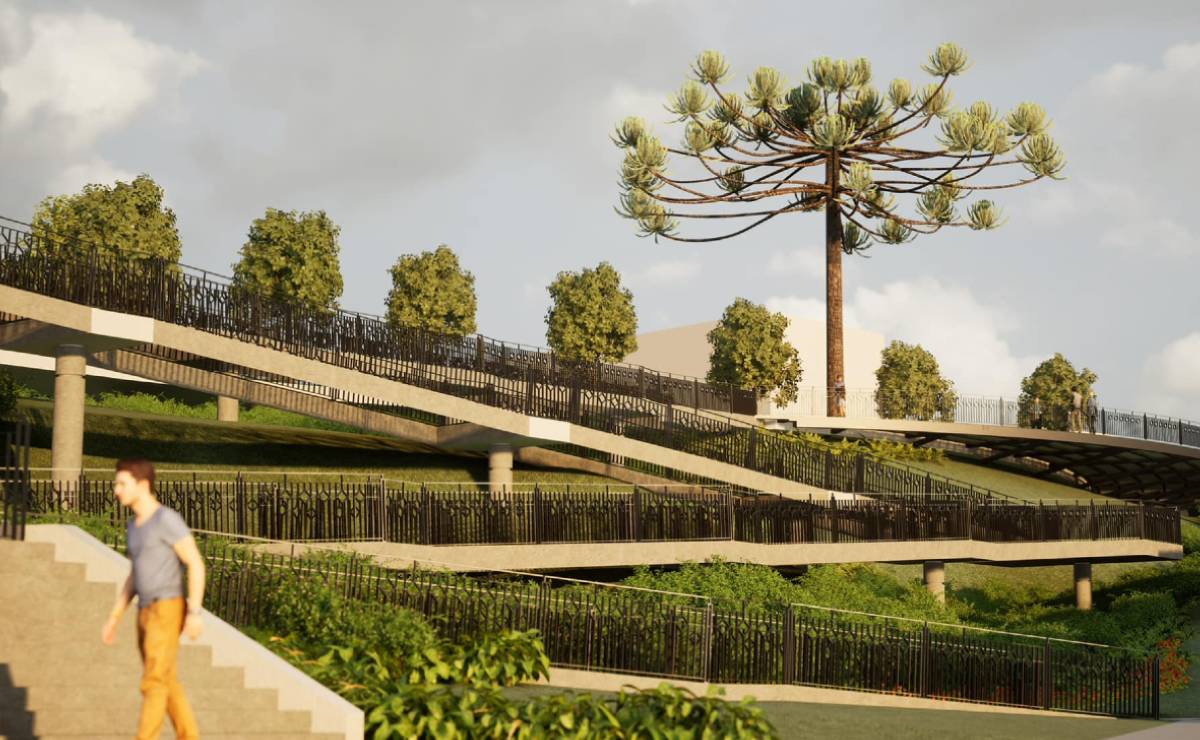 Segundo o projeto, a Praça da Araucária terá uma estrutura de rampa, entre as ruas José Antoniassi e Roberto Barrozo, com 220 metros de comprimento em zigue-zague e aramada (com buraquinhos). Veja aqui a projeção da nova praça de Curitiba.