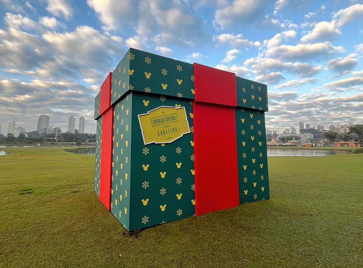 Uma caixa de presentes gigante “brotou” na madrugada desta quinta-feira (10) no Parque Barigui, um dos mais tradicionais cartões postais de Curitiba. A caixa é verde, com um laço vermelho, e uma placa que diz “Entrega especial para Curitiba”. Ainda não se sabe qual é o presente do “benfeitor” misterioso, mas deve ter a ver com a programação de Natal na cidade.