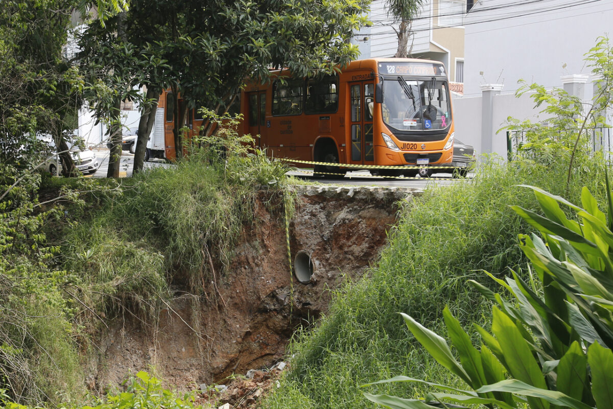 “Primeiro desabou a manilha pluvial, porque aquele rua é nova. Depois veio vindo e caiu a grade de proteção. Está perigoso porque naquele local está passando o ônibus Campo Comprido/Capão Raso”, relata o morador.