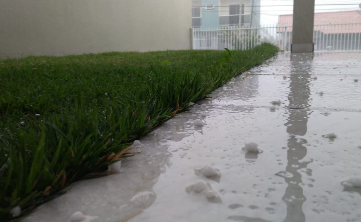 Pouco depois que a chuva começou na capital vieram os trovões e pancadas mais fortes. No Bairro Alto, em Curitiba, teve granizo, assim como no Bacacheri.