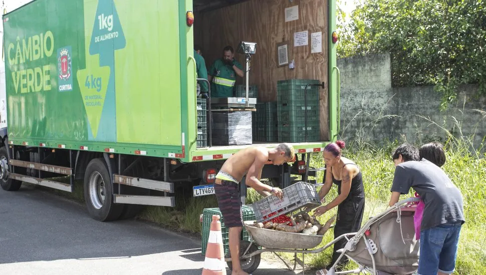 O programa Câmbio Verde da Prefeitura de Curitiba realizará atendimentos em 15 locais diferentes da cidade nesta quarta-feira. O serviço itinerante permite que moradores troquem materiais recicláveis por frutas e verduras.