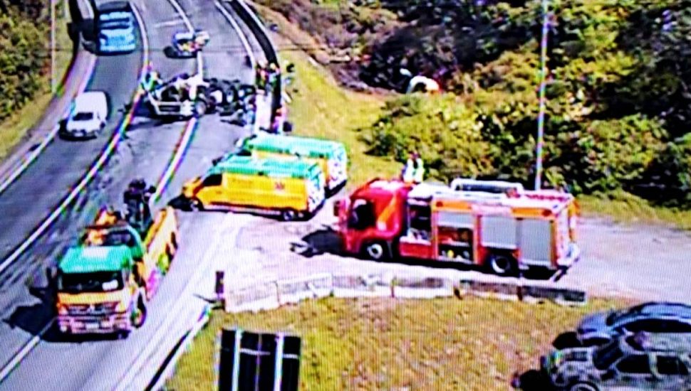 De acordo com a PRF o acidente aconteceu próximo das 8h no quilômetro 668 da rodovia, no sentido Garuva, em Santa Catarina. Com o tombamento da carreta carregada de ácido sulfúrico pode ter ocorrido vazamento, o que ainda não foi confirmado pelas equipes no local. O trecho é muito perigoso e já foi palco para graves acidentes.