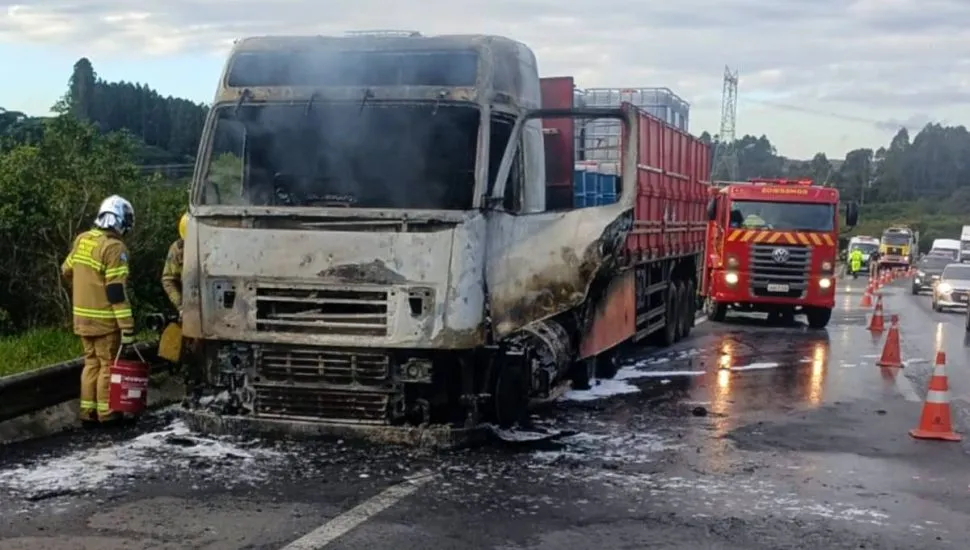 Um caminhão carregado com verniz pegou fogo na tarde deste domingo (1º) no km 118 da BR-277, sentido Ponta Grossa, em Campo Largo, na Região Metropolitana de Curitiba. A via precisou ser totalmente interditada para o atendimento da ocorrência.