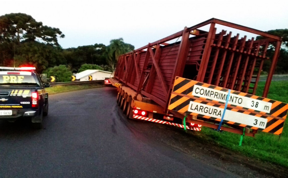 Conforme informou a Polícia Rodoviária Federal (PRF), a carga devia ser desmontada por completo para ser retirada do local com o uso de um guindaste. A peça é um economizador, que está sendo transportado do Porto de Paranaguá, no litoral do Paraná, até uma fábrica de celulose em Três Lagoas (MS).
