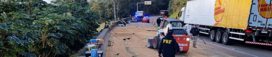 Caminhão com maconha tomba na BR-277 e bloqueia a rodovia na região de Curitiba
