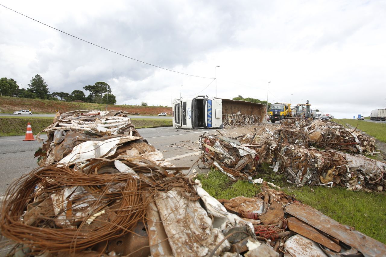 Um motorista com sinais de embriaguez provocou o tombamento da carreta carregada de sucata que conduzia, na altura do quilômetro 90 da rodovia BR 116, na pista sentido Curitiba. O acidente aconteceu na tarde deste domingo (21) e deixou o trânsito complicado na região.