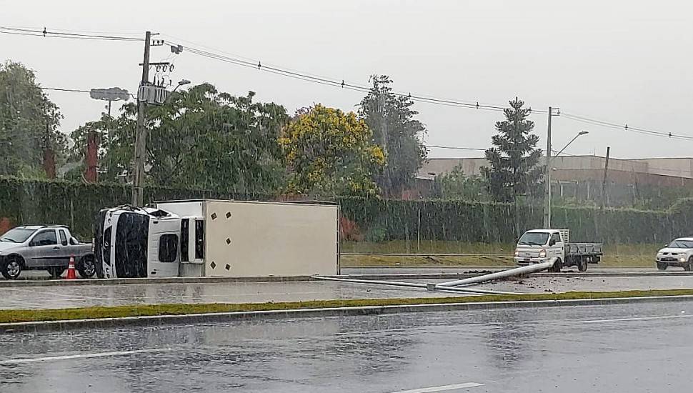 O tombamento de um caminhão baú na Linha Verde, na manhã desta quarta-feira (27), causa transtornos a motoristas que trafegam no sentido Atuba da via. Segundo informações da Polícia Rodoviária Federal (PRF), o motorista perdeu o controle do veículo, bateu em um poste e parou tombado no canteiro central. O acidente ocorreu pouco depois do viaduto do Tarumã, sentido Atuba.