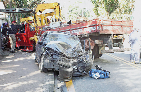 De acordo com o sargento Coelho, dos bombeiros, o Honda Civic placas LNO-0626, ocupado por duas pessoas, subia sentido Ópera de Arame. O motorista perdeu o controle do carro numa curva e invadiu a pista contrária, batendo de frente no caminhão Ford F12000, AHK-8535, onde também havia duas pessoas. Com a colisão, o motorista do caminhão invadiu um ponto de ônibus, mas não havia ninguém esperando o coletivo.