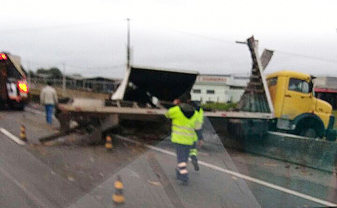 O trânsito flui em duas faixas, mas o caminhão ainda permanece no local. Por volta das 10h30 a pista foi totalmente liberada.
