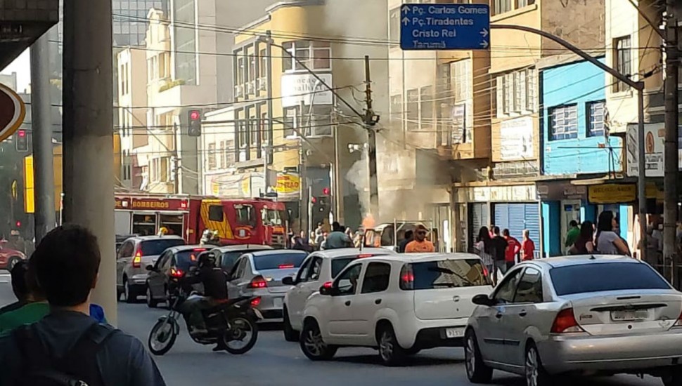 O fogo que tomou conta de um caminhão de cargas de pequeno porte estacionado na Avenida Marechal Floriano Peixoto, esquina com a Rua André de Barros, chamou a atenção de quem passava pelo Centro de Curitiba na tarde desta terça-feira (1º), por volta das 16h. Por conta do incêndio, o trânsito foi totalmente bloqueado no cruzamento das vias. Às 16h45, as chamas seguiam consumindo o veículo, sendo combatidas pelo Corpo de Bombeiros. Ninguém se feriu.