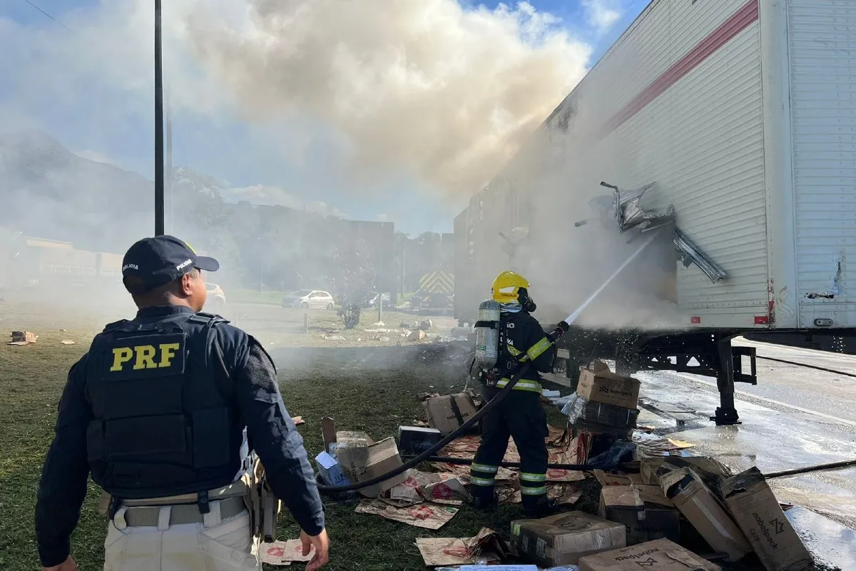 O caminhão levava uma carga com produtos diversos, avaliada em R$ 1,4 milhão. De acordo com a PRF, após o fogo atingir o veículo, houve início de saque da carga e cerca de 10% dos produtos foram levados pelos saqueadores.