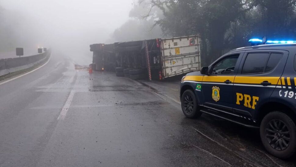 Segundo a Polícia Rodoviária Federal (PRF), o tombamento ocorreu no KM 44 da BR-277. Duas faixas estão interditadas, e a retirada do caminhão só vai ocorrer com a melhora do tempo, pois no início da manhã, uma forte neblina impedia o serviço.