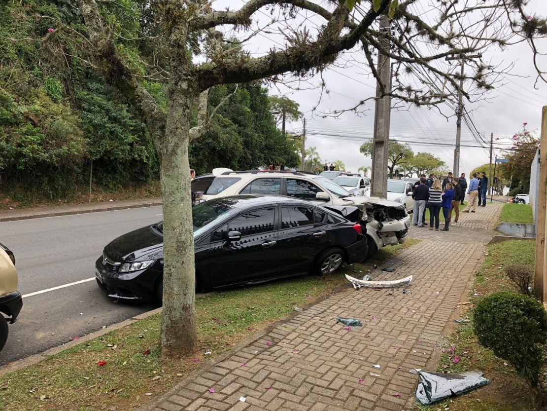 Cinco carros foram danificados numa violenta batida ocorrida por volta das 10h na esquina das ruas Júlio Perneta com a Mamoré, no bairro Mercês, em Curitiba. De acordo com relato de testemunhas, o motorista da Hilux descia a Júlio Perneta em alta velocidade e colidiu com um Sandero, que não respeitou a preferencial e tentou atravessar o cruzamento. Ninguém ficou ferido, mas o estrago foi enorme.