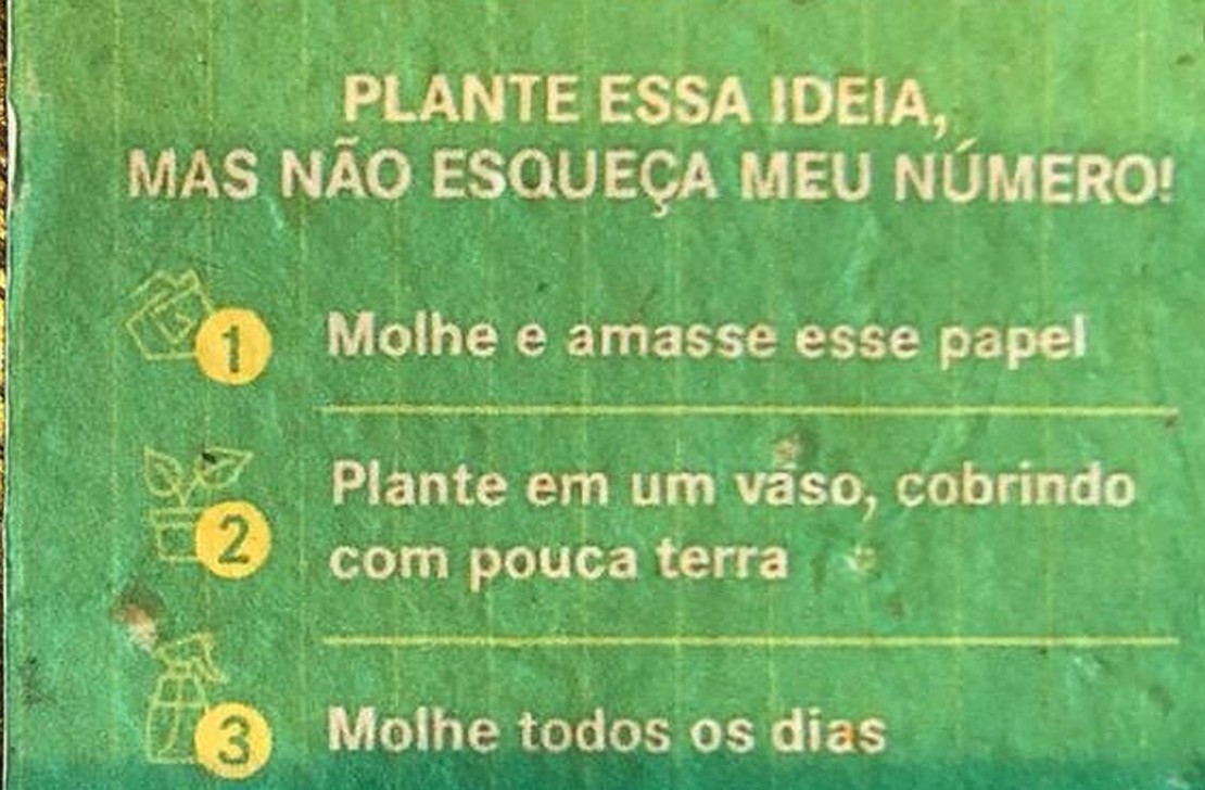 Em cada santinho, além da foto do candidato e o número para o voto, vem a explicação de como usar o papel: molhar e amassar o papel, plantar num vaso com terra e aguar todos os dias. “Ao fim, pode ser que nasça uma muda de manjericão ou cravo, o que vai fazer com que a pessoa ainda possa usar esses condimentos em casa”.
