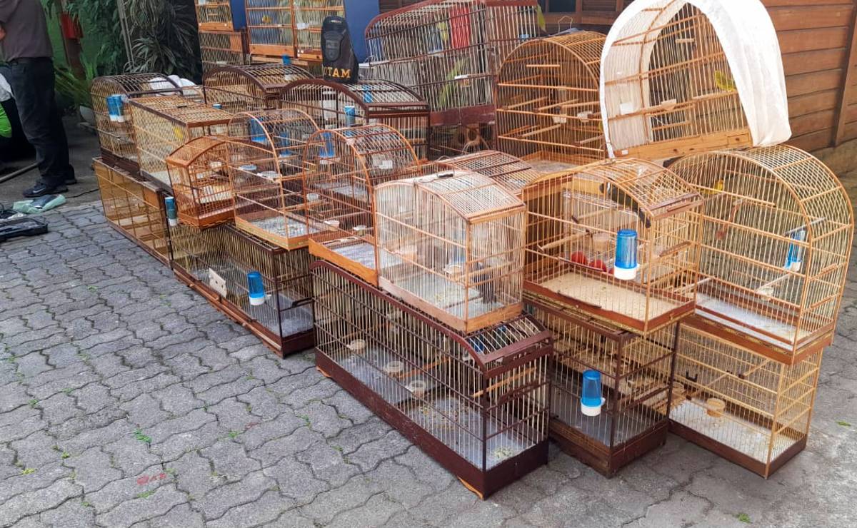 Segundo a equipe policial, durante patrulhamento pelo bairro Barro Preto, em São José dos Pinhais, eles ouviram da rua cantos de pássaros tipicamente nativos vindos de dentro de um aviário.