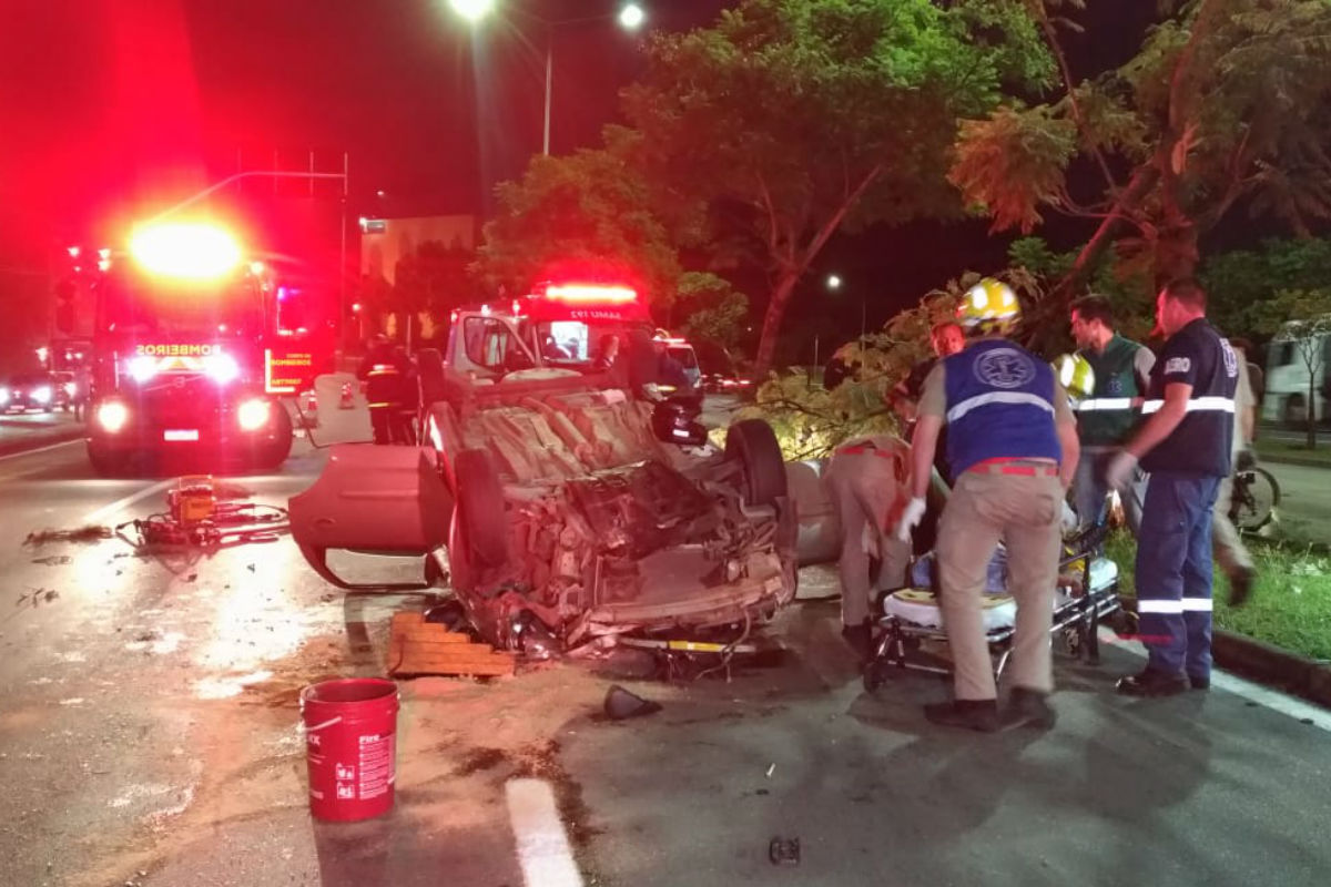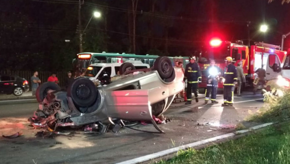 Um capotamento na Linha Verde (BR-116) deixou duas pessoas gravemente feridas no início da madrugada deste sábado (11), no Jardim Botânico, em Curitiba. O acidente envolveu dois veículos. De acordo com informações de testemunhas, o carro que capotou, um Corsa, estaria em alta velocidade e teria batido contra um Fiat Punto. Esse contato teria feito com que o Corsa capotasse por vários metros, até se chocar contra uma árvore.