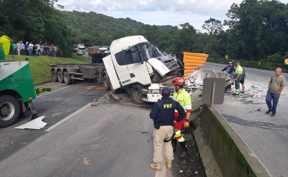 Segundo informações da Ecovia, concessionária que administra o trecho, após o caminhão-trator e o semirreboque serem removidos do local, o container permanece sobre a pista. Com isto, o trânsito flui pelo acostamento e parte da faixa da direita. A faixa da esquerda, no sentido contrário da via, permanece interditada, aguardando a retira da carga. O tráfego é lento e a fila já alcança o km 57. Até o começo da tarde, o fluxo seguia devagar no mesmo trecho.