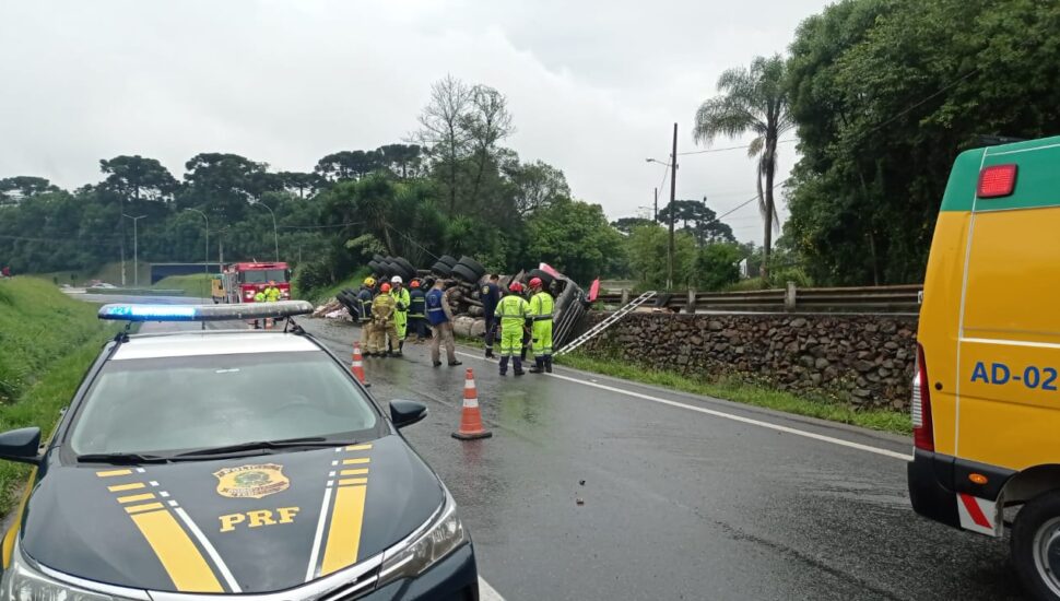 De acordo com informações da Polícia Rodoviária Federal, o motorista do caminhão ficou preso nas ferragens. Equipes de salvamento constataram óbito do condutor no local.