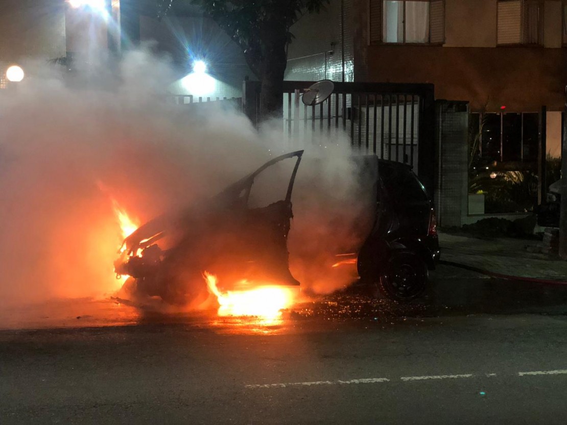 Um carro ficou completamente destruído após pegar fogo na noite dessa quinta-feira (5) na Rua Bento Viana, no Água Verde, em Curitiba. As chamas começaram por volta das 21 horas e o Corpo de Bombeiros levou cerca de uma hora entre chegar e controlar o incêndio. Ninguém ficou ferido no incidente.