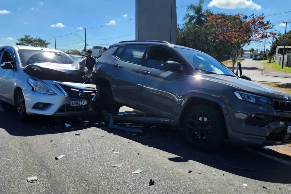 A batida envolveu um Nissan Versa branco e um Jeep Compass cinza. Com o impacto, o Compass ficou sobre a dianteira do outro veículo, com uma das rodas traseiras erguidas. Pelo asfalto, ficaram espalhados diversos fragmentos de peças dos carros.