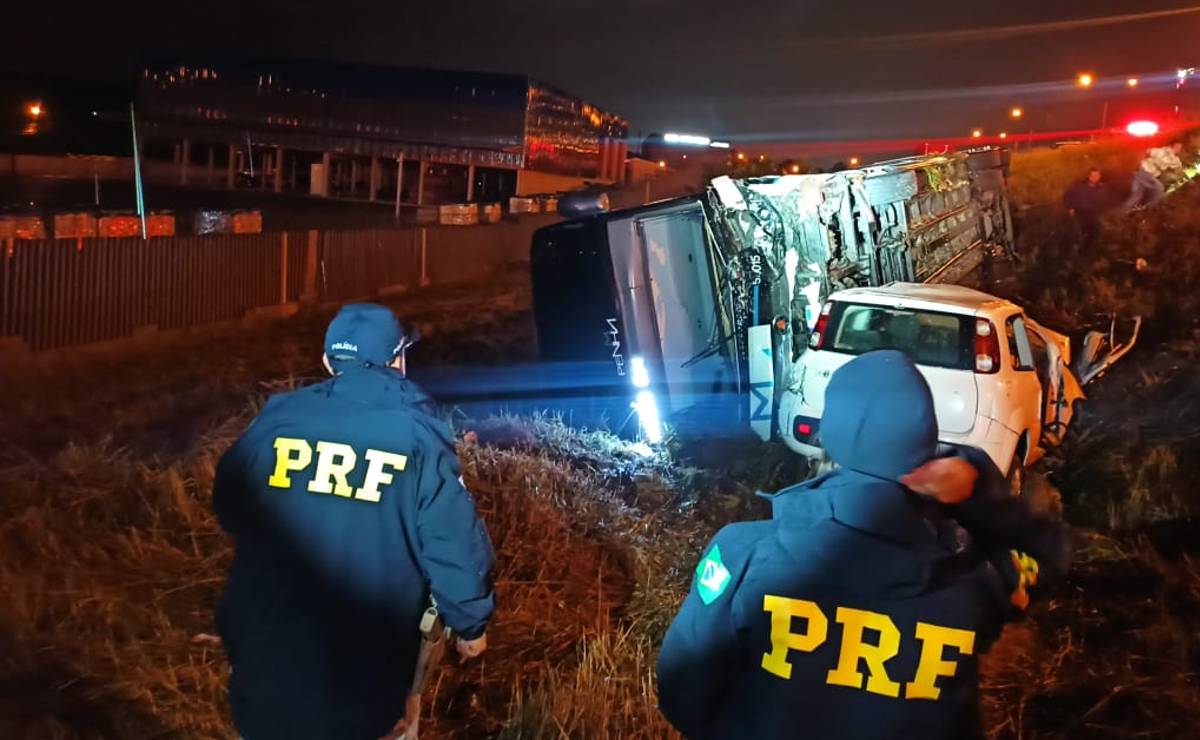 Segundo a Polícia Rodoviária Federal (PRF), logo após bater contra o carro o ônibus tombou em um canteiro lateral. As duas vítimas fatais estavam no ônibus e, entre as vítimas graves, o motorista do veículo Uno. Não houve bloqueio no trânsito e na manhã desta segunda-feira (29) o fluxo fluía normalmente.