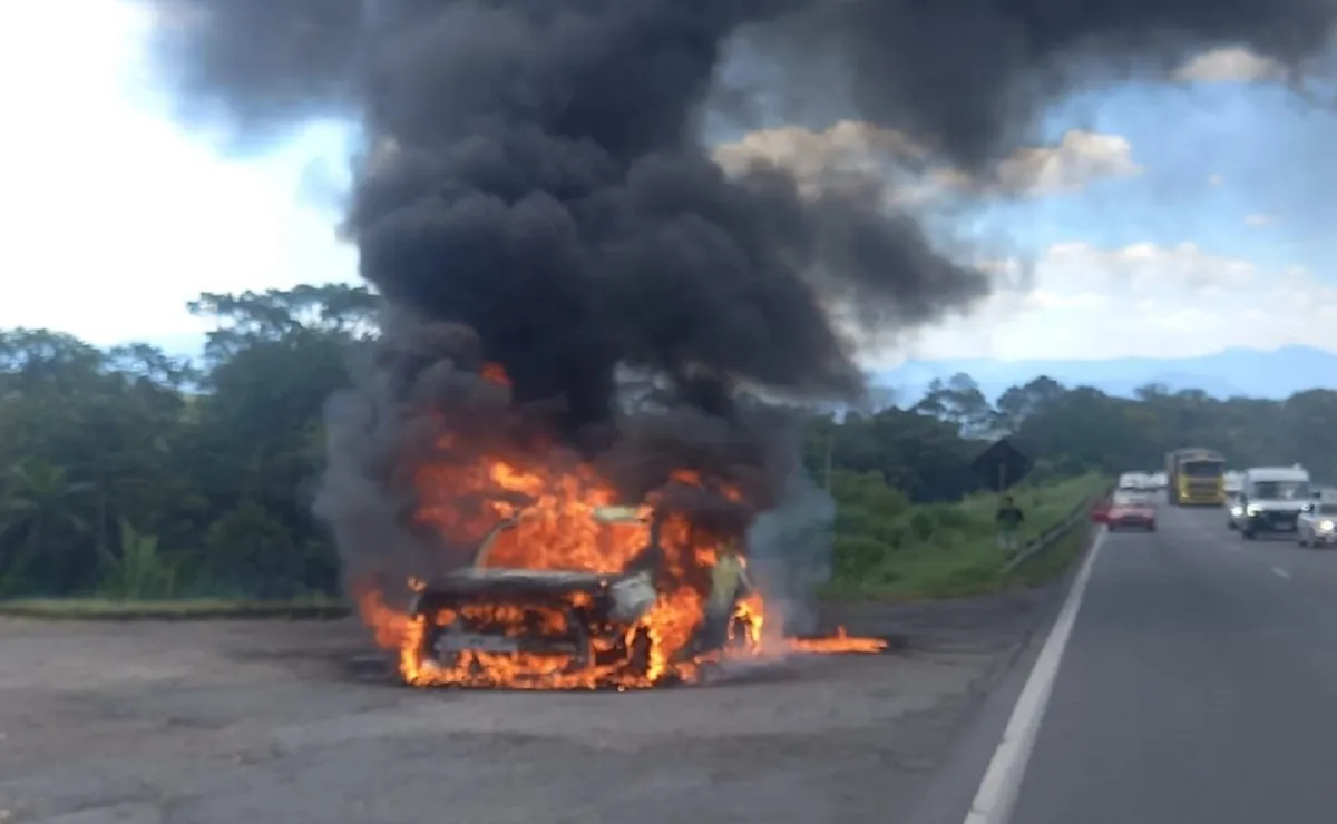 Um incêndio em um carro na altura do km 39 da BR-277, em Morretes, no litoral do Paraná, complicou o trânsito na pista sentido Curitiba no início da tarde desta terça-feira (13).