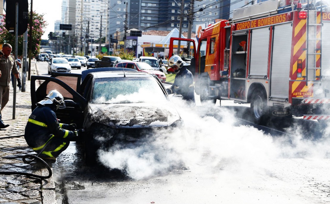 Um carro pegou fogo na manhã desta segunda-feira (16) na esquina da Avenida Visconde de Guarapuava com a Rua Conselheiro Laurindo, na região central da Curitiba. Apesar da grande destruição, ninguém ficou ferido.