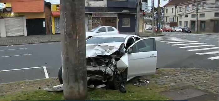 De acordo com informações do repórter André Zanfonatto, da RPC, o carro branco atingiu o Ônix e, em seguida, subiu na calçada e acertou em cheio um poste. Já o impacto da batida fez o veículo da Chevrolet parar dentro do pátio de uma agência bancária, quase derrubando uma das grades que cercam a lateral do banco.