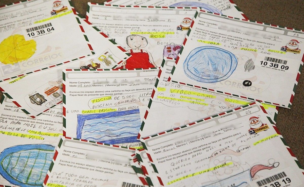 As cartinhas são manuscritas por alunos matriculados em escolas públicas, até o 5º ano, e por crianças em situação de vulnerabilidade social, com até 10 anos de idade.