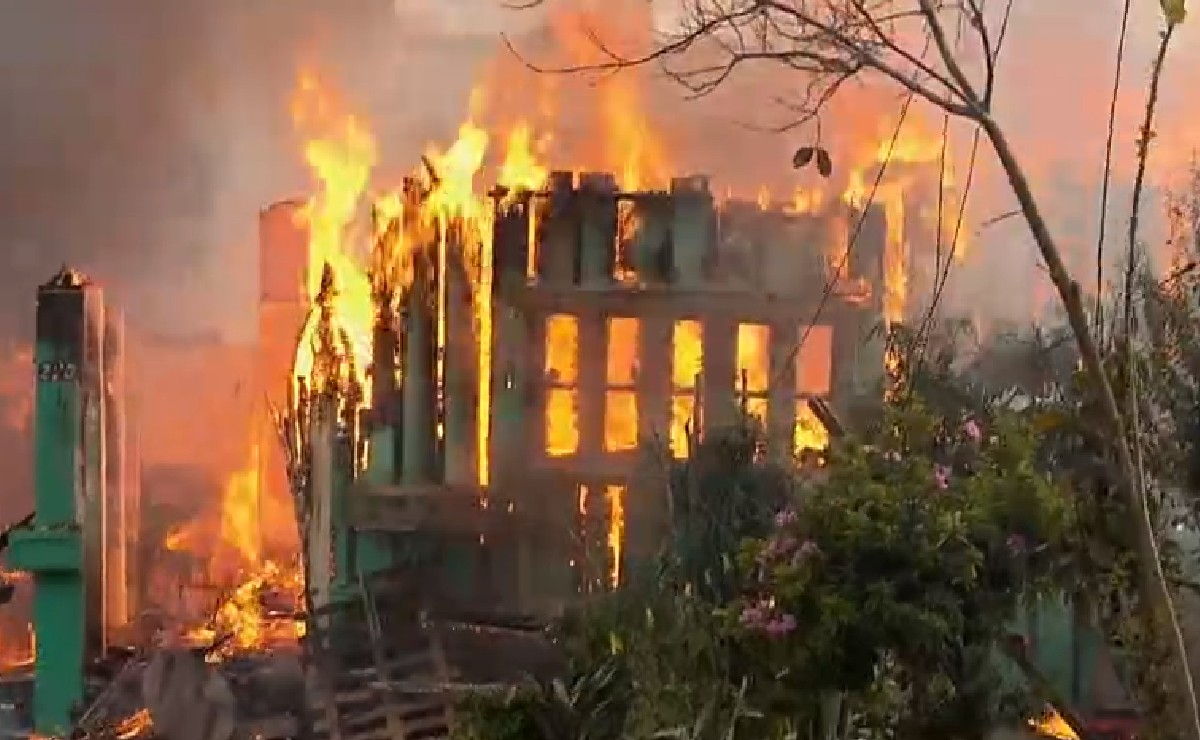 Uma casa de madeira foi completamente destruída após ser consumida por um incêndio de grandes proporções no imóvel, localizado bem na esquina da rua Gaspar Carrilho Junior com a Rua do Amapá, no Vista Alegre, em Curitiba.