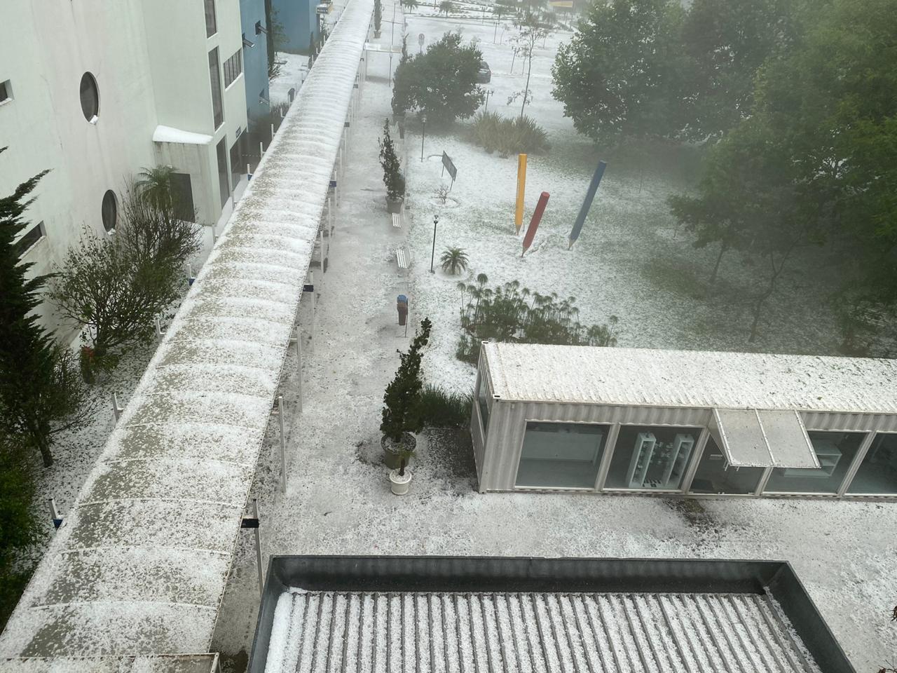 A mesma situação ocorreu no bairro Jardim São Gabriel, em Colombo. Com o forte acúmulo de pedras, o telhado de outra quadra de futebol também não suportou e despencou. Nenhuma pessoa saiu ferida. Ainda na região metropolitana, mas em São José dos Pinhais, as calhas da recepção da Maternidade do Hospital São José não suportou com o peso das pedras e cedeu. Até que sejam feitos os reparos, a recepção da Maternidade será temporariamente pela entrada do Pronto Socorro, na Rua Alcidio Viana. Somente este local foi atingido e o atendimento não foi prejudicado.