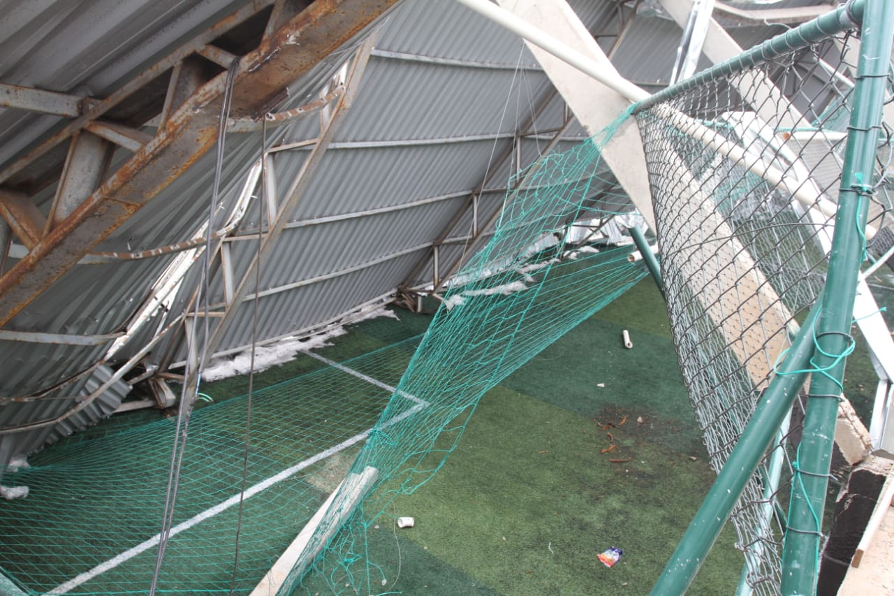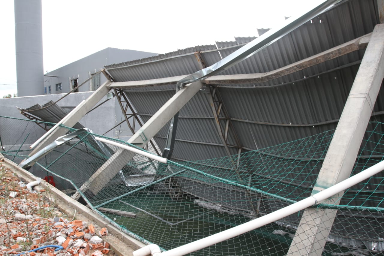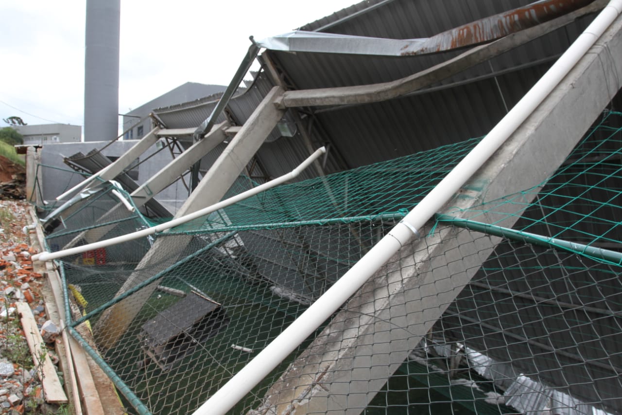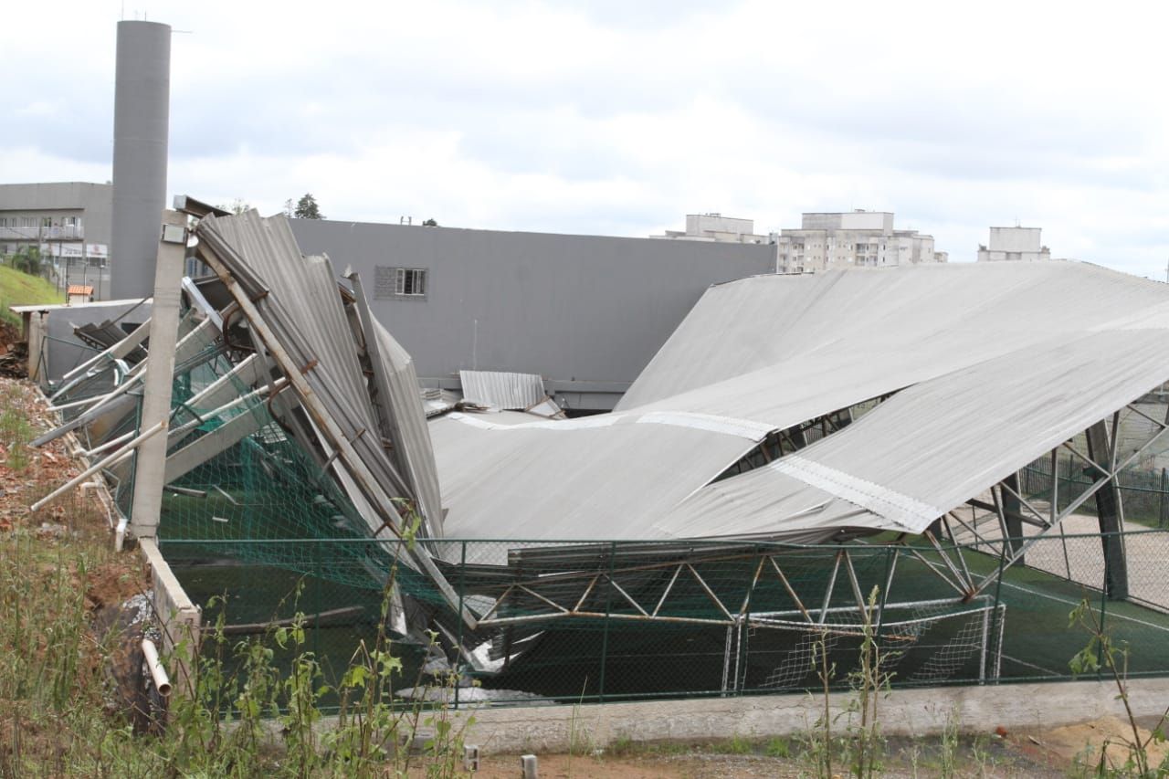 À margem da Linha Verde, no bairro Tingui, na capital, a estrutura de cobertura de uma quadra de futebol despencou, mostrando uma cena de completa destruição na manhã desta quarta. A estrutura construída recentemente não suportou o impacto da chuva e despencou. Na manhã desta quarta, ainda havia granizo no local.