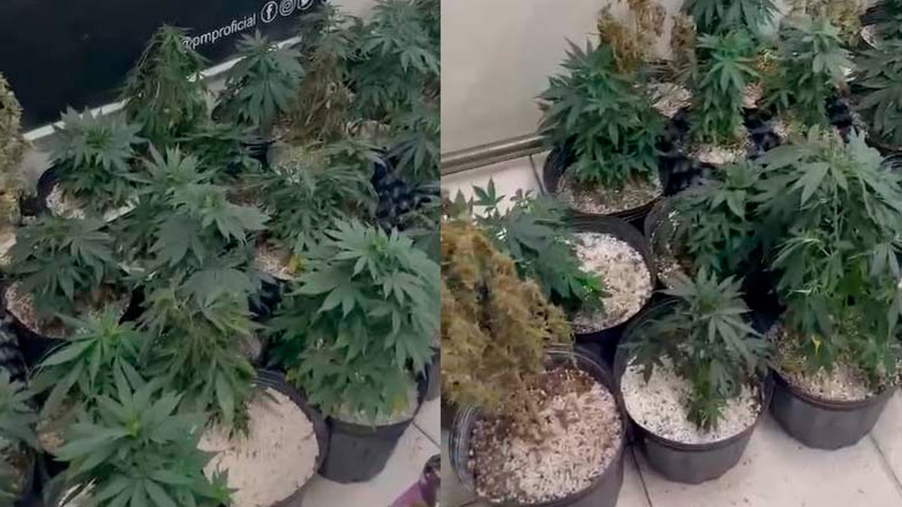 Pela janela da casa, os policiais avistaram uma estufa com vários pés da planta. Após a vistoria do interior do endereço, os agentes encontraram, além dos 42 pés, 1,7 kg de maconha já fracionada, um cooler para climatizar o ambiente, uma prensa hidráulica e exaustores. Estes equipamentos eram utilizados para a produção da droga.