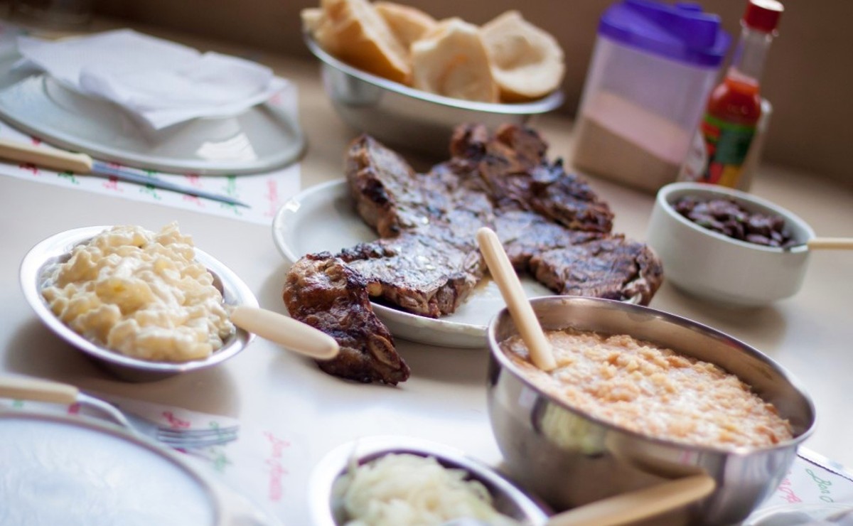 Os preços para a compra do churrasco são: carne a R$70, risoto R$25 e maionese vendida por R$20. Os itens são vendidos separadamente, sendo que o cliente pode optar por um item ou por todos. O churrasco completo custa R$115 e serve de duas a três pessoas.