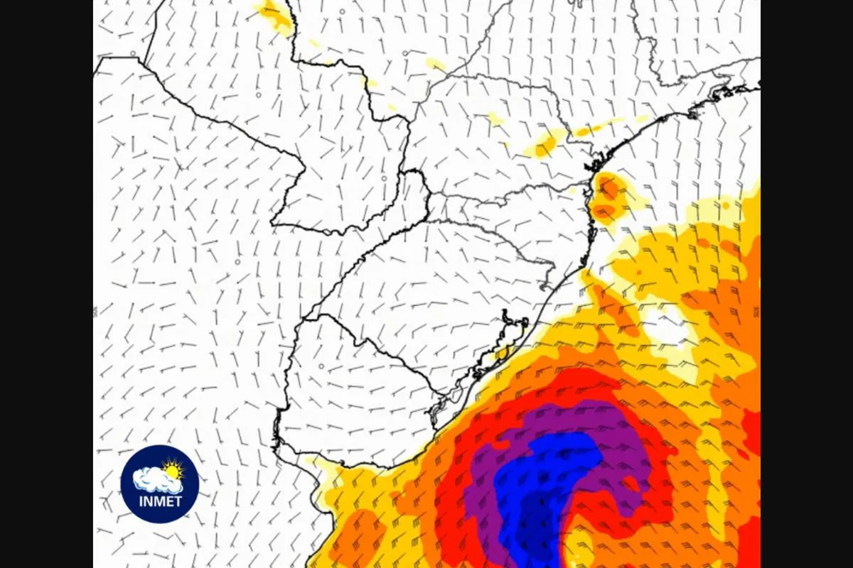 Veja a imagem abaixo que mostra o caminho do ciclone extratropical pelo sul do Brasil.