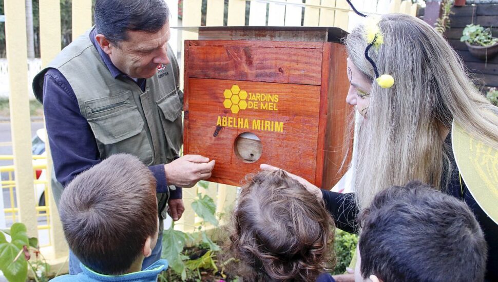 Depois de capturar com sucesso seu enxame de abelhas nativas, o Centro Municipal de Educação Infantil Uberaba agora tem a sua própria caixa do projeto Jardins de Mel da Prefeitura de Curitiba, uma parceria entre as secretarias do Meio Ambiente, Educação e Segurança Alimentar.