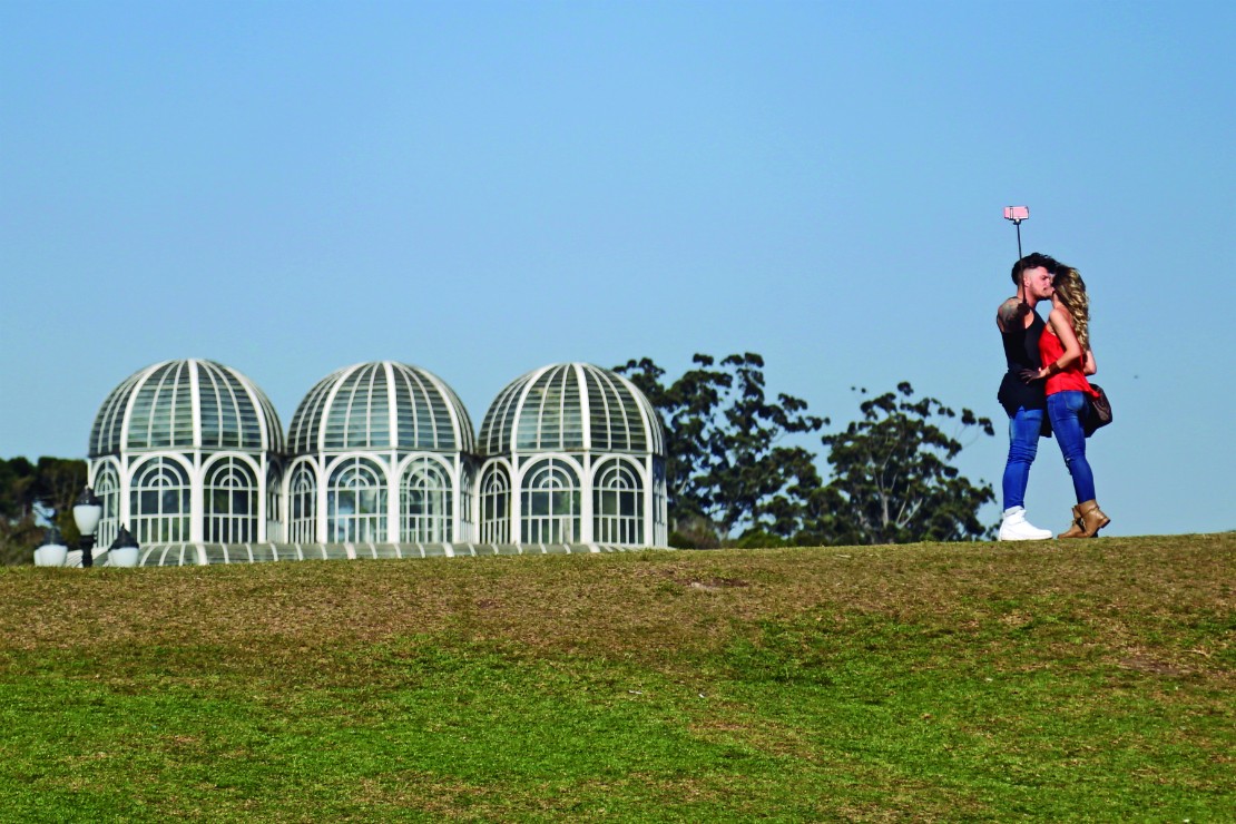 Mesmo sendo dia de semana, muita gente conseguiu dar uma escapada aos parques de Curitiba para aproveitar o calor e o sol. A designer de sobrancelhas Karina Possamai, 25 anos, decidiu curtir o seu dia de aniversário brincando com a filha, Isabelle, e o marido, o representante comercial Adriano Koenig, 35 anos, no gramado do Jardim Botânico.