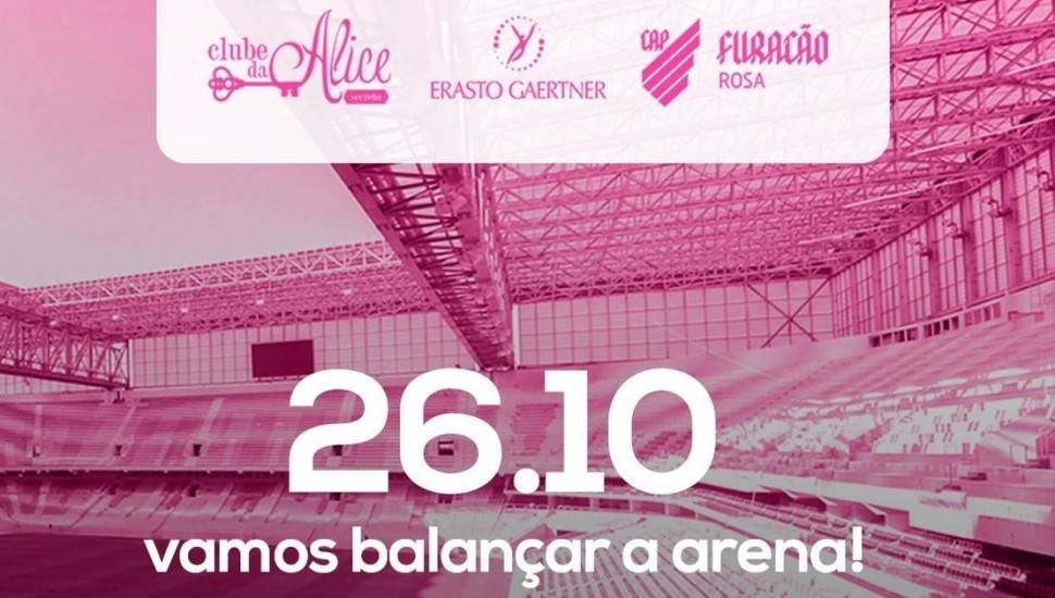 Acontece neste sábado (26), das 13h30 às 17h30, o evento “Juntas em uma só voz”. A iniciativa é do Clube da Alice, em parceria com a Fundação Clube Athletico Paranaense, e destinará 100% da renda dos ingressos vendidos ao Hospital Erasto Gaertner. A ideia das organizadoras é realizar a produção de um filme do maior Flash Mob do Outubro Rosa de Curitiba.