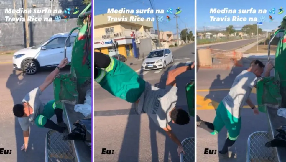 O coletor de lixo Denilson Ribeiro, de 21 anos, foi demitido após publicar em suas redes sociais vídeos em que ele aparece fazendo performances perigosas no caminhão da coleta, em Fazenda Rio Grande, na Região Metropolitana de Curitiba (RMC).