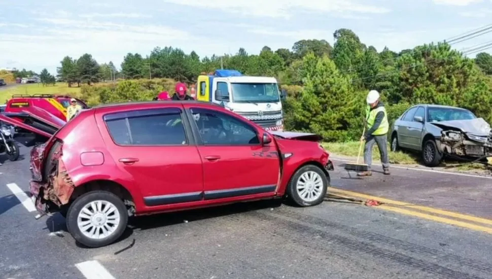 No carro cinza estava uma mulher e o filho. A mulher ficou presa nas ferragens e ambos foram encaminhados ao Hospital Evangélico. No carro vermelho estava um casal, também encaminhado ao hospital.