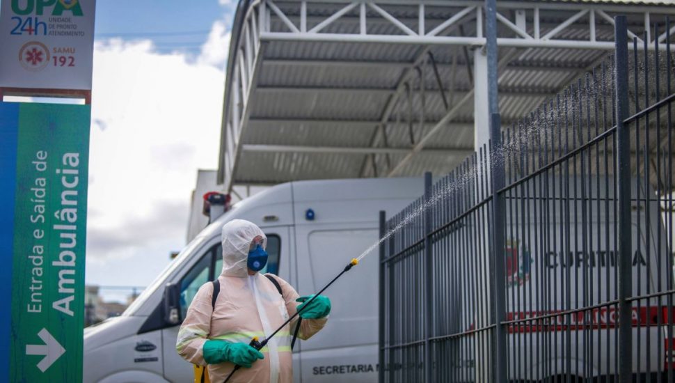 Limpeza em UPA de Curitiba durante a pandemia. Foto: Pedro Ribas/SMCS