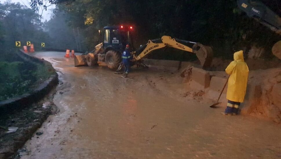 Equipes da obra permanecem no trecho realizando serviços preventivos e paliativos, com a retomada total dos trabalhos acontecendo após as condições climáticas melhorarem.