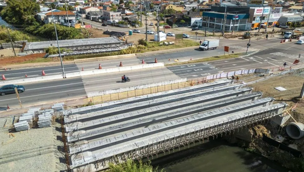 As vigas são gigantes: têm aproximadamente 33 metros de comprimento, são feitas de concreto e aço e pesam pouco mais de 50 toneladas. Além do viaduto e das pontes, a intervenção prevê a requalificação de vias, implantação de novos pavimentos e calçadas, modernização da iluminação pública e melhorias no sistema de drenagem.