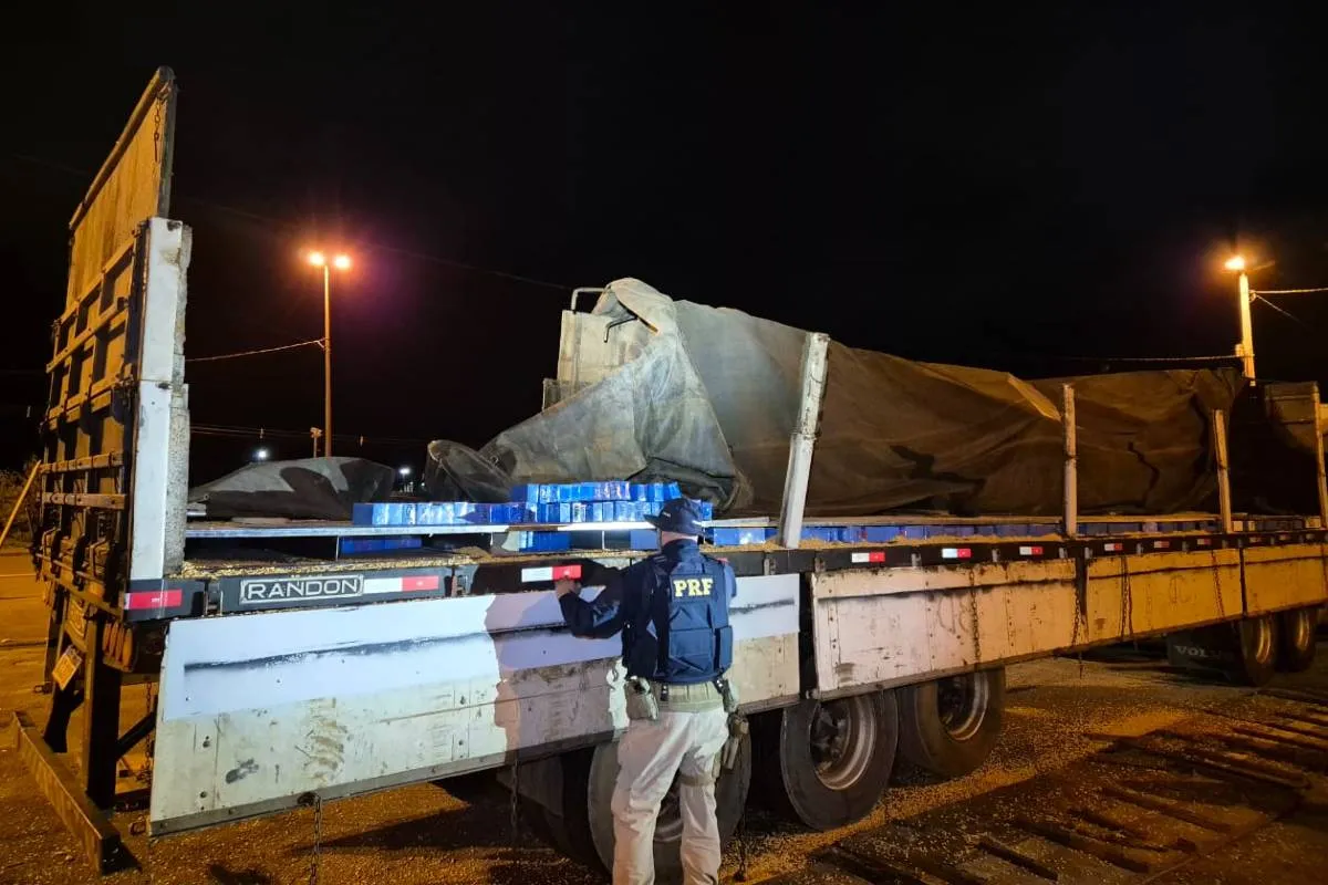 Uma operação da Polícia Rodoviária Federal (PRF), na noite desta quinta-feira (07) culminou na apreensão de uma expressiva quantidade de aparelhos celulares escondidos em um compartimento oculto sob toda a extensão do assoalho de um semireboque.